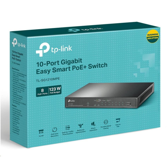 TP-Link switch TL-SG1210MPE, 9xGbE RJ45, 1x SFP/RJ45, 8xPoE+ 123W, fanless