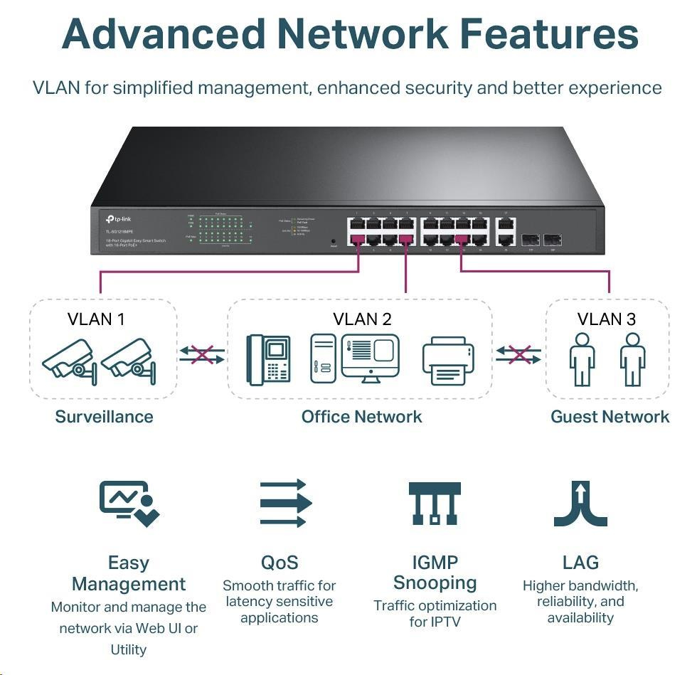 TP-Link switch TL-SG1218MPE, 16xGbE PoE+ 250W RJ45, 2xGbE RJ45, 2xGbE SFP/RJ45, 2x Fans