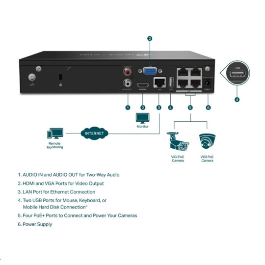 TP-Link VIGI NVR1004H-4P, [NVR, 4 channels, 4x PoE]