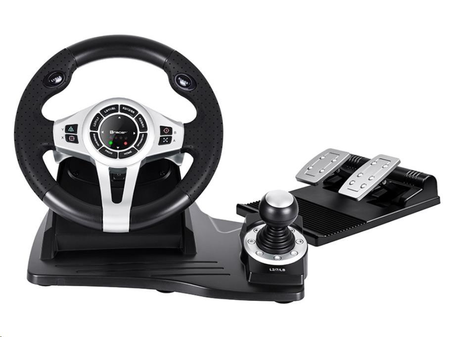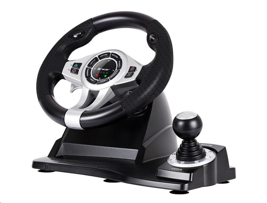 Automobilové závody jsou vaším živlem? Nastupte do závodu s volantem TRACER Roadster a nechte své protivníky za sebou. Vysoce kvalitní volant TRACER Roadster je kompatibilní jak s konzolemi PS3 / PS4 / Xbox One, tak s PC. Volant pracuje velmi tiše a plynule. Převodovka a samostatný modul s brzdovými a plynovými pedály oživí vaše řídicí centrum, což umožňuje rychlou reakci, zrychlení i pohodlné brzdění a řazení. Vaše jízda bude stejně dynamická, jako byste seděli za volantem skutečného soutěžního vozu. Úhly otáčení 270 stupňů vám umožní plně se dostat do závodu. Zařízení lze připevnit k zemi pomocí přísavek, což zajišťuje stabilitu volantu i při těch nejdivočejších závodech. Špičkové materiály herního volantu Roadster z něj činí spolehlivé a velmi odolné zařízení. Tlačítka odpovědná za manévry a 8pásmový analogový D-pad byly zabudovány do volantu, aby umožňovaly rychlý a pohodlný přístup. Užijte si realistický herní zážitek a pohodlí závodního kola. Volant potažený perforovanou gumou zabraňuje pohybu zařízení v rukou, když se řítíte dráhou. Čtyři LED indikátory na volantu pomáhají udržovat kontrolu nad zrychlením, aniž byste museli spouštět oči ze stopy.