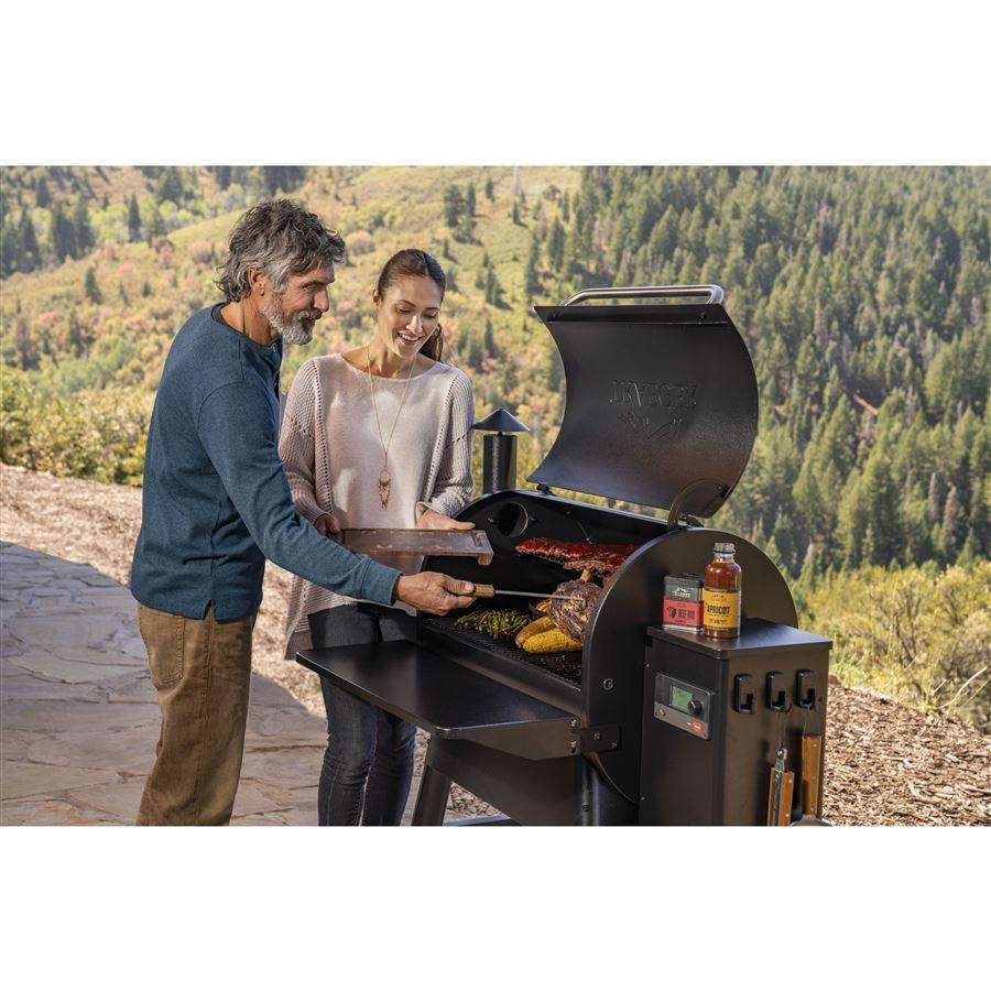 Tento elektrický gril na dřevěné pelety nabízí všestranný teplotní rozsah od 165 °F do 500 °F, ideální pro přesné uzení, pečení, grilování a BBQ. S napětím 120 V AC a výkonem 95 W se rychle zahřívá a udržuje konzistentní teplotu. Jednoduše jej zapojíte do nejbližší zásuvky pomocí přiloženého 6stopého napájecího kabelu D2 NEMA. Díky připojení WiFIRE® můžete sledovat vaření odkudkoli pomocí aplikace Traeger. Má kapacitu zásobníku na pelety 18 liber a pohodlné čištění zásobníku usnadňuje rychlou změnu příchutí pelet. Pro dostatek místa na vaření jsou k dispozici dvě řady porcelánem potažených ocelových roštů s celkovou varnou plochou 780 čtverečních palců. Součástí balení je také jedna sonda na maso Traeger, která usnadňuje kontrolu vnitřní teploty masa.
