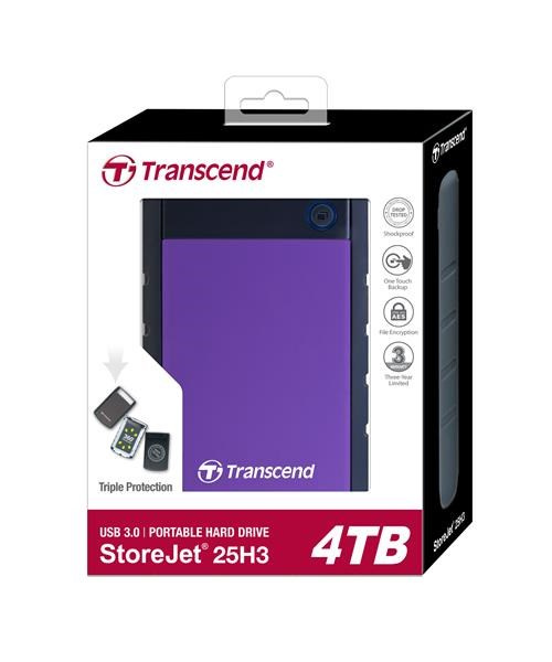 TRANSCEND externí HDD 2,5" USB 3.1 StoreJet 25H3P, 4TB, Purple (nárazuvzdorný)