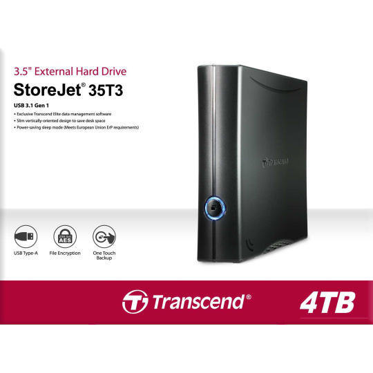 TRANSCEND externí HDD 3,5" USB 3.1 StoreJet 35T3, 4TB, Black, Turbo