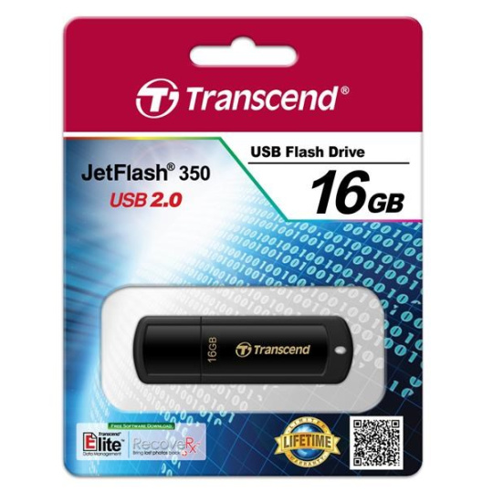 TRANSCEND Flash Disk 16GB JetFlash®350, USB 2.0 (R:13/W:4 MB/s) černá