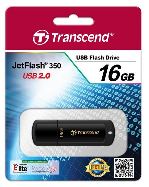 TRANSCEND Flash Disk 16GB JetFlash®350, USB 2.0 (R:13/W:4 MB/s) černá