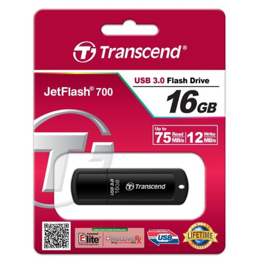TRANSCEND Flash Disk 16GB JetFlash®700, USB 3.0 (R:75/W:12 MB/s) černá