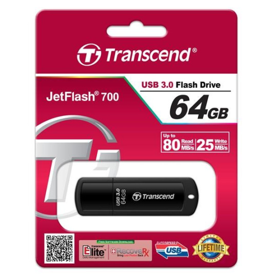 TRANSCEND Flash Disk 64GB JetFlash®700, USB 3.0 (R:80/W:25 MB/s) černá