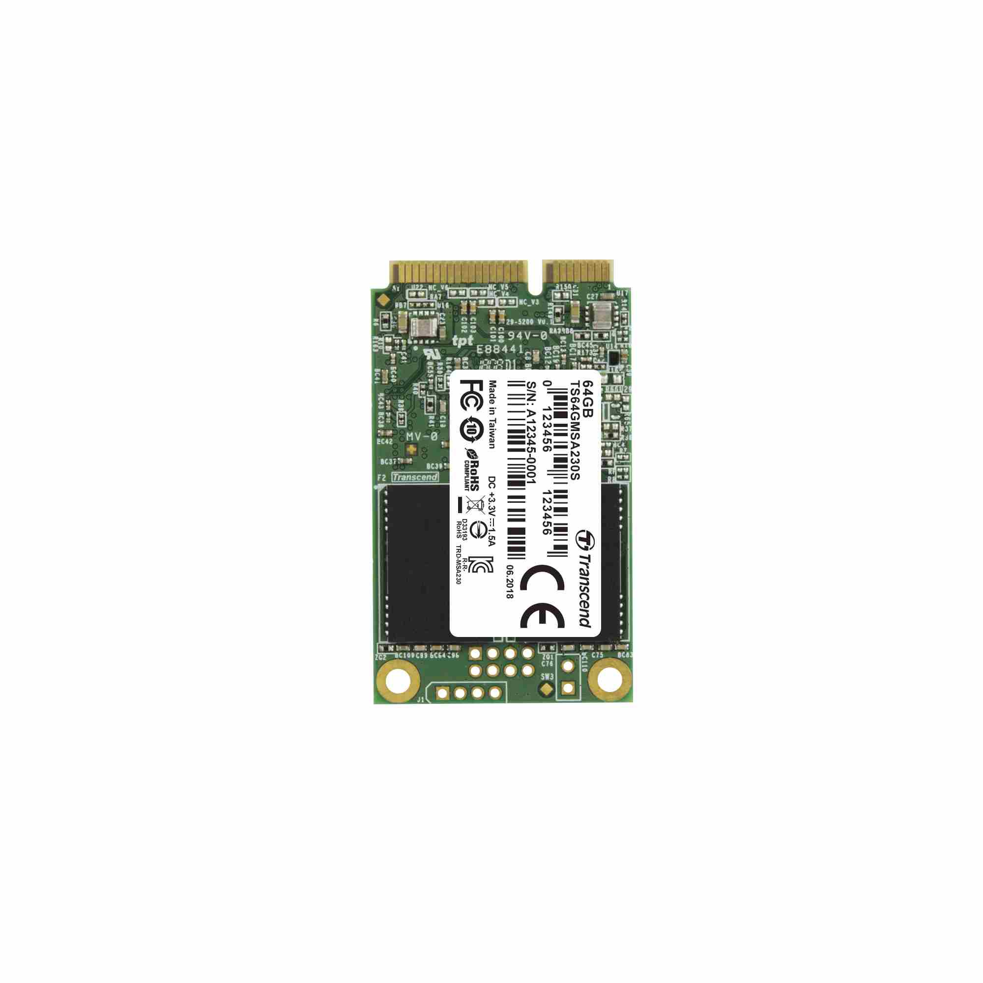 TRANSCEND Industrial SSD MSA230S 64GB, mSATA, SATA III, 3D TLC