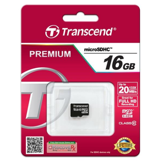 TRANSCEND MicroSDHC karta 16GB Class 10, bez adaptéru
