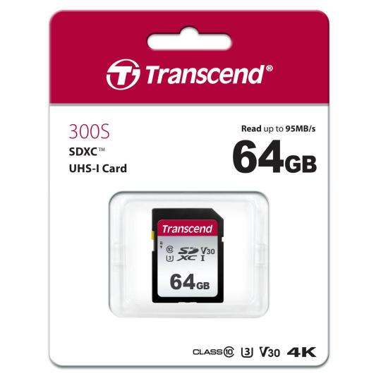 TRANSCEND SDXC karta 64GB 300S, UHS-I U3 V30 (R:95/W:45 MB/s)