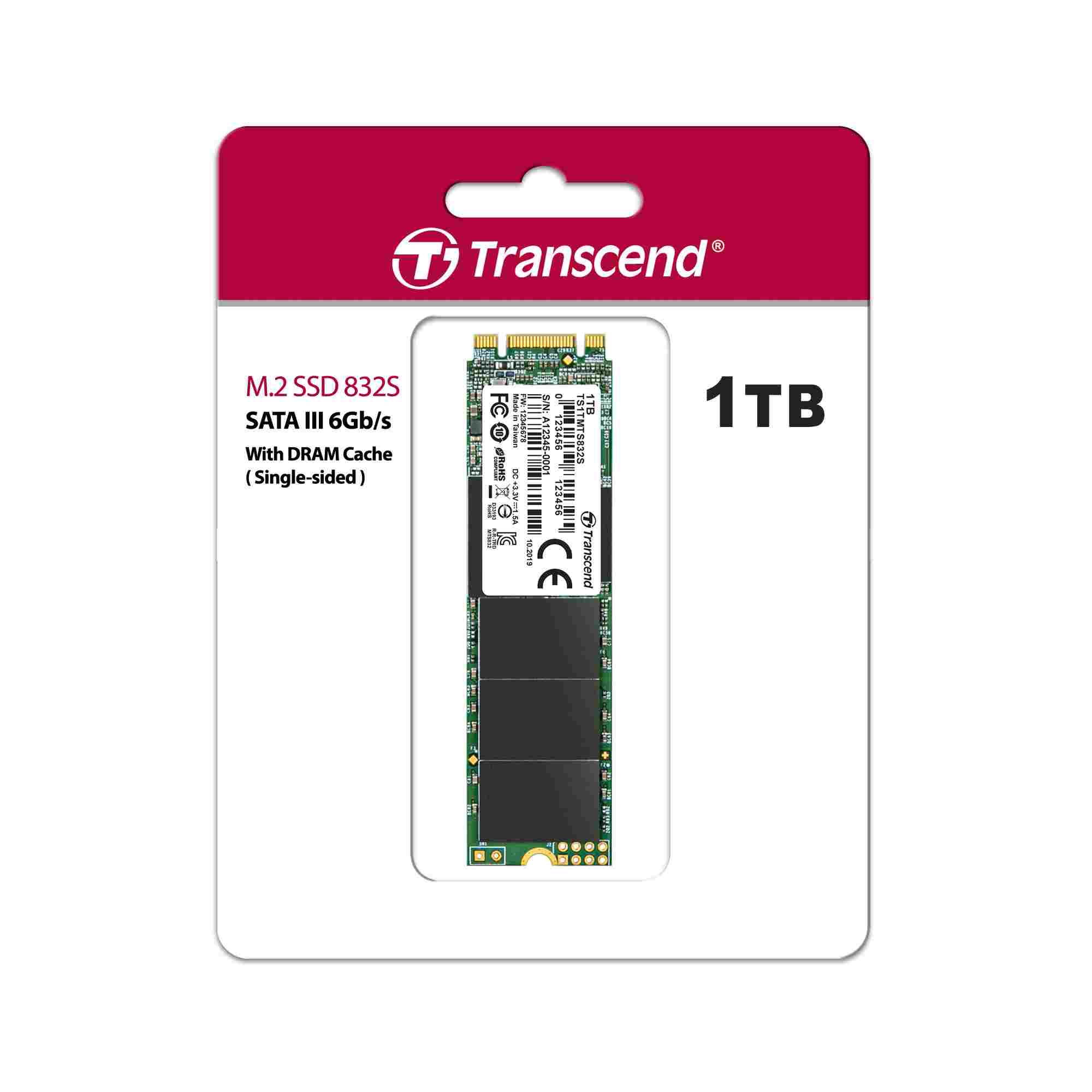 TRANSCEND SSD MTS832S, Single Side, 1TB, M.2 2280, SATA B+M Key, TLC