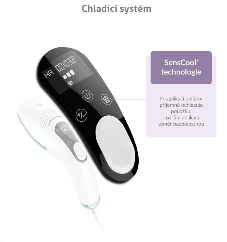 Technologie SensCool® hlídá po celou dobu epilace vaši bezpečnost. Epilátor mohou díky tomu používat i lidé s citlivou pokožku.