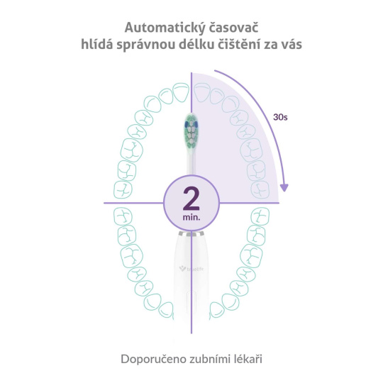 Sonický kartáček je nastaven, aby se automaticky vypnul po uplynutí ideální doby čištění, tedy 2 minutách.