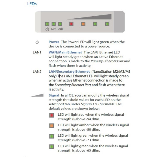 Nanostation M5 disponuje proti verzi "locoM5" dvěma ethernet.porty a výkonnější anténou se ziskem 16dBi. Můžeme tak k jednotce například připojit IP kameru. Díky možnosti distribuce PoE napájení i na tento port není nutné instalovat dva samostatné PoE adaptéry. PoE na druhém portu lze softwarově vypínat/zapínat, lze tak případně vzdáleně restartovat připojené zařízení. PoE adaptér disponuje "RESET" tlačítkem pro uvedení jednotky do továrního nastavení případně TFTP režimu pro obnovu poškozeného firmware.