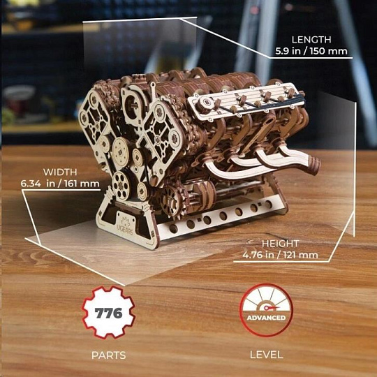 Ugears 3D dřevěné mechanické puzzle Motor V8