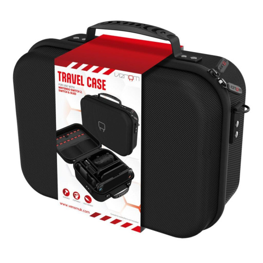 Take your Switch 2, dock and accessories everywhere whilst also keeping them safe and secure with the Venom Nintendo Switch Travel Case. Case includes inserts designed to offer the perfect snug fit for your console and its accessories whilst out and about. Features: • Universal fit for Nintendo Switch 2, Switch and OLED. • Robust outer shell to protect from bumps and scratches. • Internal foam to fit perfectly around your console, dock and accessories. • Reinforced carry handle and adjustable shoulder strap. • Mesh pocket for additional accessories..