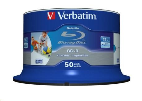 VERBATIM BD-R SL Datalife HTL (50-pack)Blu-Ray/Spindle/6x/25GB Wide Printable