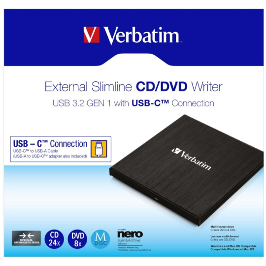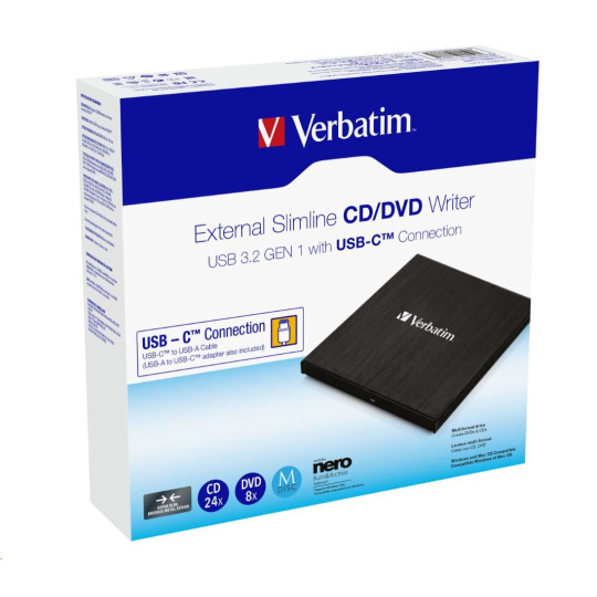 VERBATIM externí mechanika DVD-RW Rewriter USB-C, černá