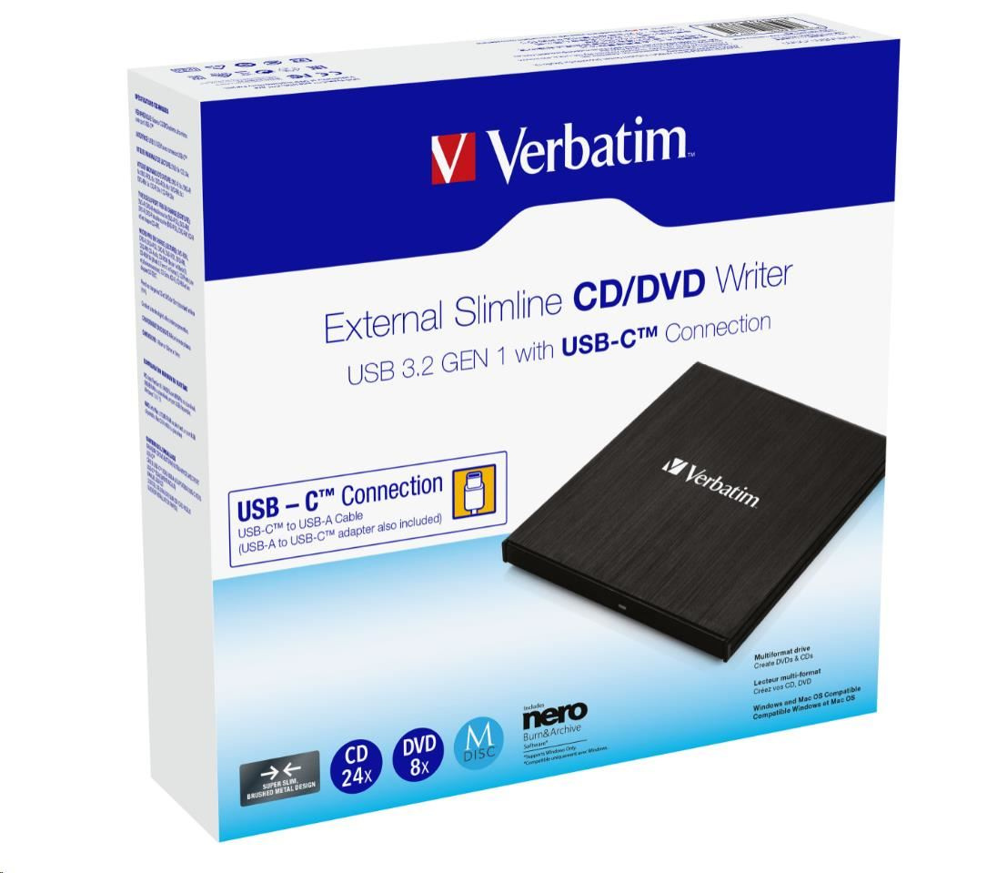 VERBATIM externí mechanika DVD-RW Rewriter USB-C, černá