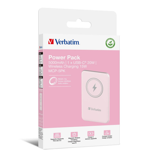 VERBATIM Powerbanka Charge 'n' Go, Magnetická, 5000 mAh, USB-C, Růžová