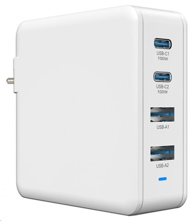 Rychlonabíjecí, síťová USB stanice až pro 4 USB zařízení (2x USB-C, 2x USB-A) o celkovém výkonu 100W s podporou technologií QC4+ a PD3.0. Elektronika obsahuje inteligentní čip pro identifikaci zařízení a optimalizaci nabíjecího proudu a napětí.
