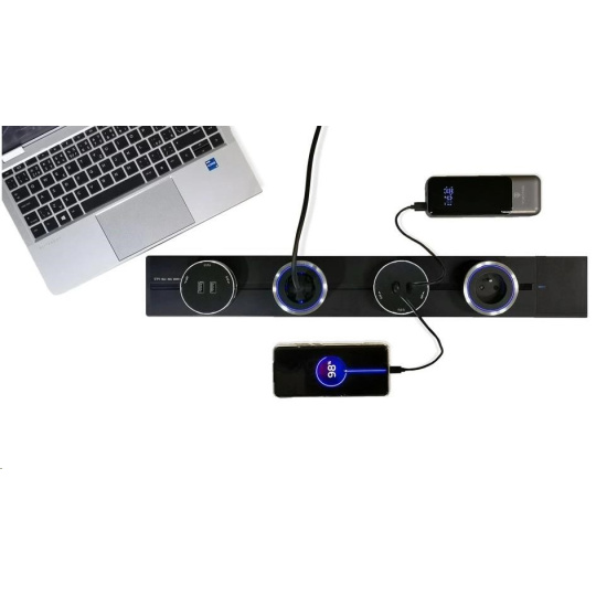 - Bezpečný a robustní design: Zásuvková lišta je vyrobena z odolné hliníkové slitiny, která zajišťuje dlouhou životnost a ochranu proti přehřátí. Těsnicí pásek chrání proti prachu a náhodnému dotyku, což snižuje možnost úrazu elektrickým proudem.