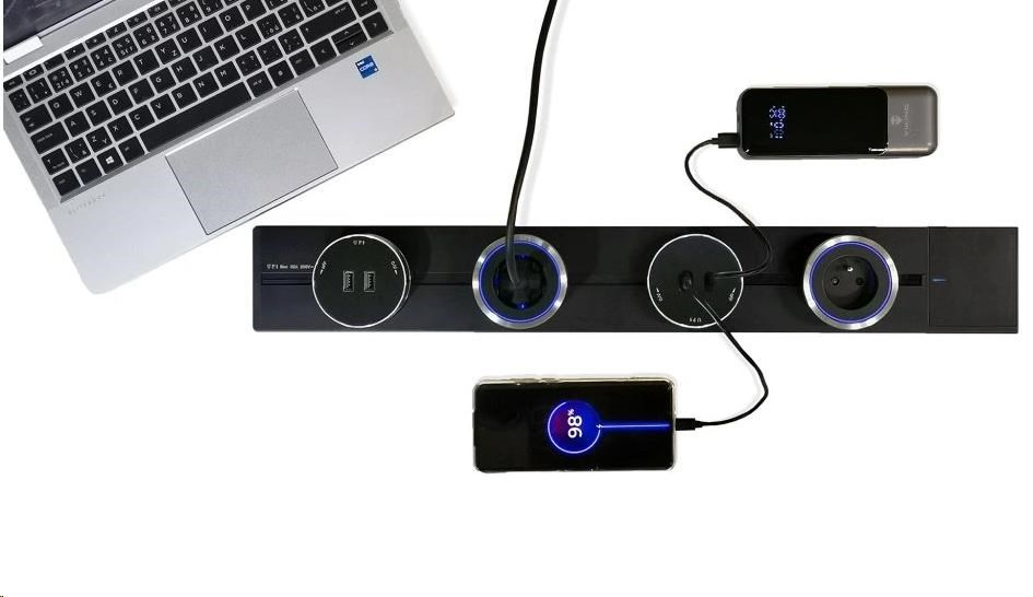 - Bezpečný a robustní design: Zásuvková lišta je vyrobena z odolné hliníkové slitiny, která zajišťuje dlouhou životnost a ochranu proti přehřátí. Těsnicí pásek chrání proti prachu a náhodnému dotyku, což snižuje možnost úrazu elektrickým proudem.