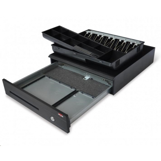 Virtuos pokladní zásuvka C425C, s kabelem 24V, kov. držáky, 9-24V, černá