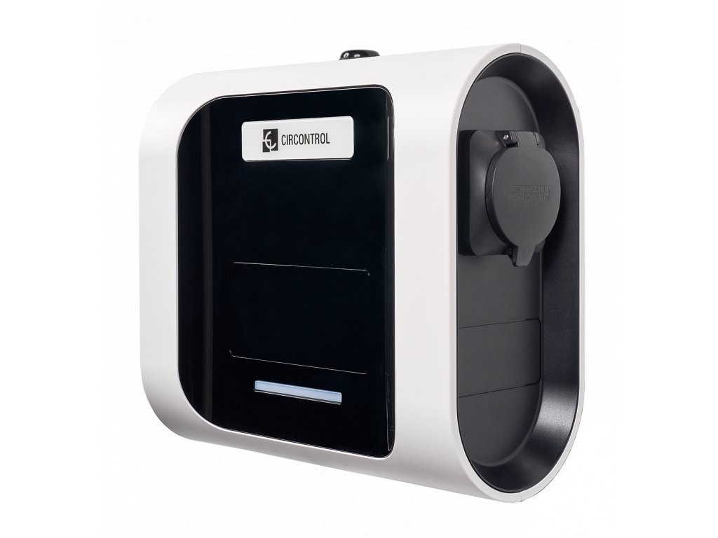 • Přední LED lišta informuje uživatele nejenom o stavu nabíječky (např. v provozu, závada), ale i o stavu nabíjení elektromobilu; stav nabíjení (pohybující se modré světlo) oproti nabitému stavu (statické modré světlo).