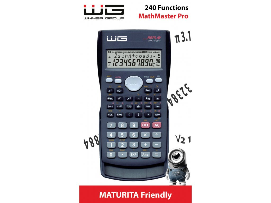 Vědecká kalkulačka WG2 je výkonný a spolehlivý nástroj s 240 funkcemi určený pro studenty, profesionály a každého, kdo potřebuje provádět složité výpočty. S pokročilými funkcemi, ergonomickým designem a intuitivním ovládáním nabízí vše, co potřebujete k řešení matematických, fyzikálních nebo chemických úkolů. Neobsahuje pro maturitu zakázané funkce, takže se hodí i k maturitě.