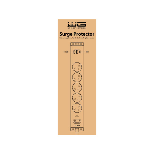 Přepěťová ochrana WG 5 slotů, 2x USB-A, 1x USB-C