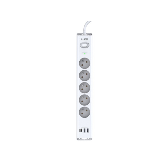 WG - Přepěťová ochrana 5 slotů + 2x USB-A + 1x USB-C, kabel 1,5 metru, bílá