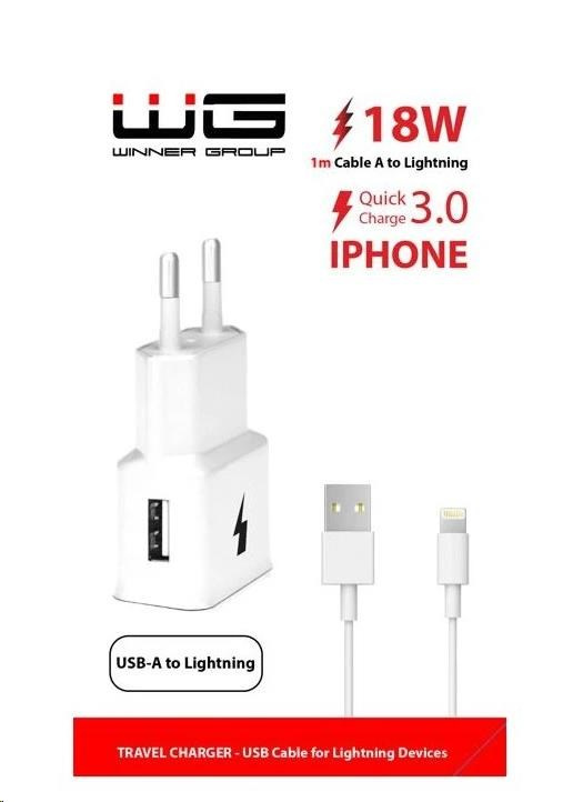 WG - Síťová nabíječka 1x USB-A, Quick Charge 3.0, 5V-9V-12V, kabel USB-A na Lightning, bílá