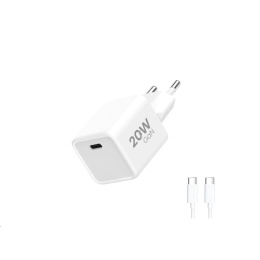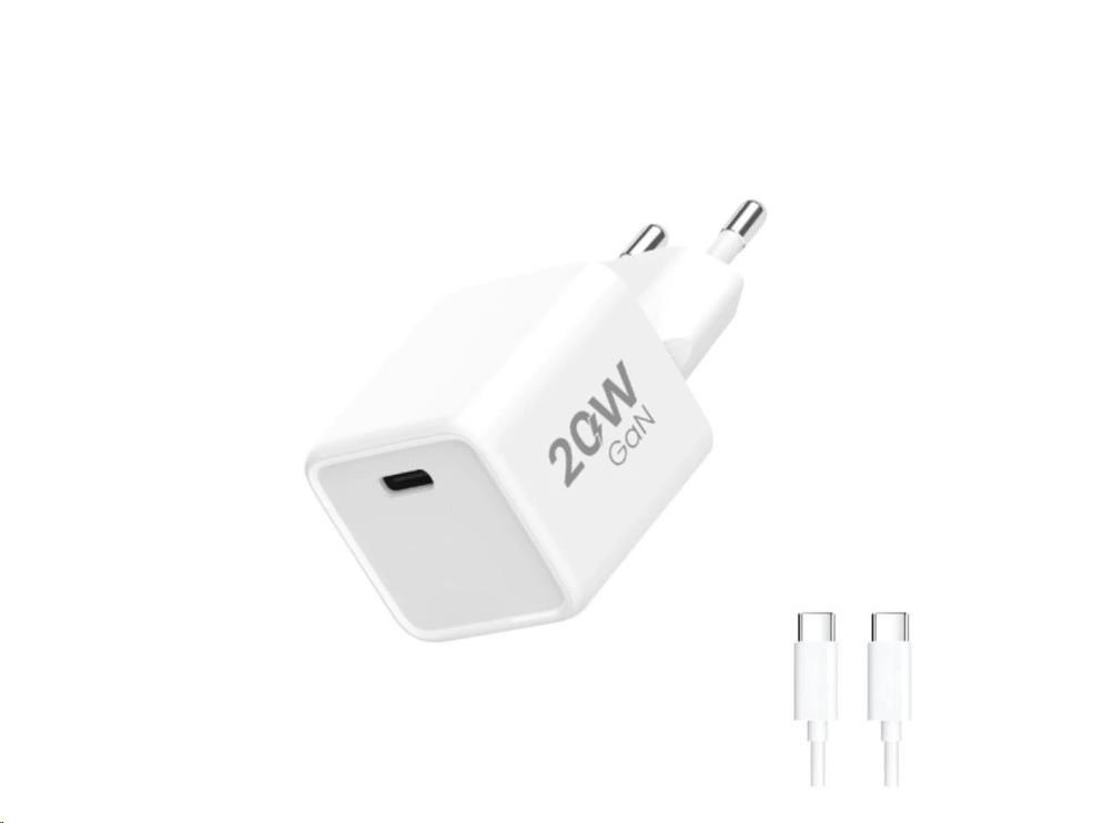 Síťová nabíječka GaN 1xUSB-C 20W + kabel USB-C to USB-C