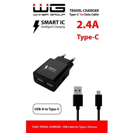 WG - Síťová nabíječka 2x USB-A 2,4A , Smart IC + kabel USB-A na Type-C, black