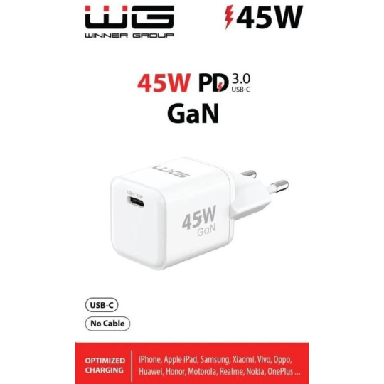 WG - Síťová nabíječka GaN 1x USB-C, PD PPS 45W, bílá