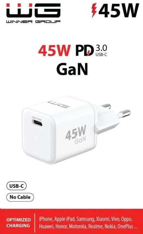WG - Síťová nabíječka GaN 1x USB-C, PD PPS 45W, bílá