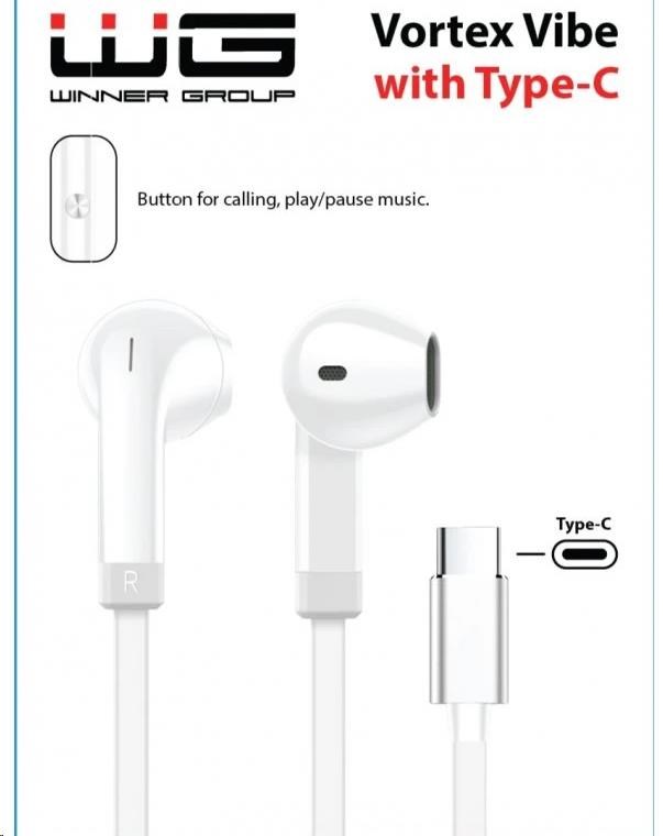 WG - Sluchátka s konektorem Type-C, Vortex Vibe, drátové, white