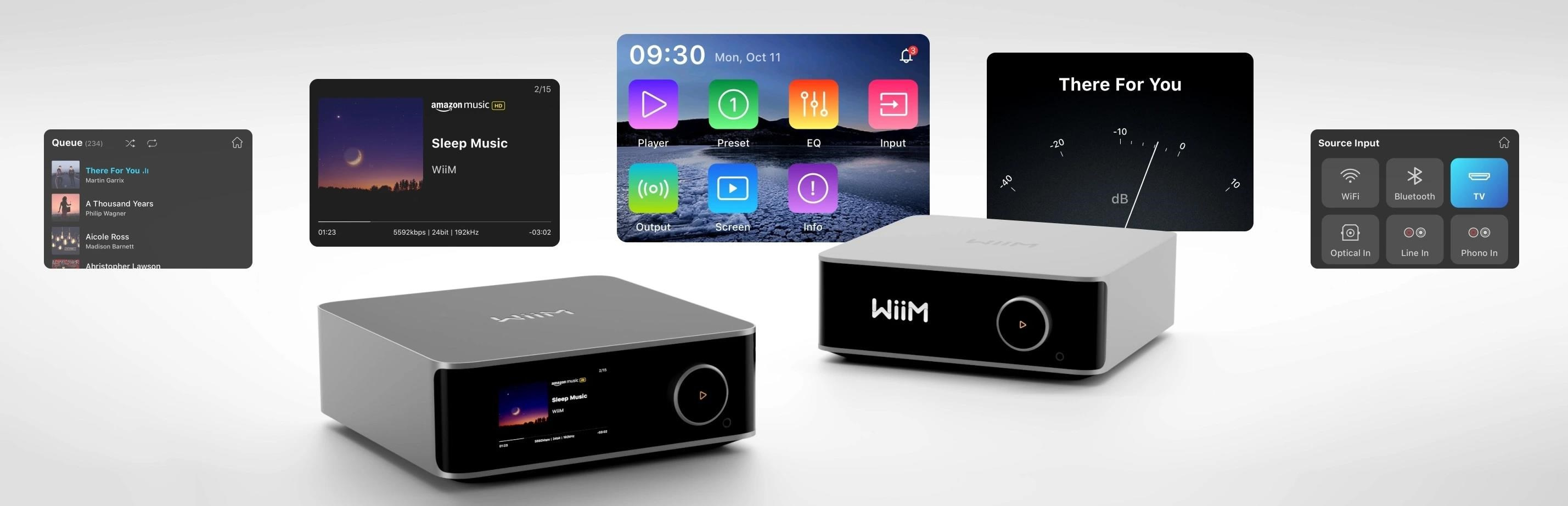 Základem všech výrobků WiiM je přehledná, rychlá ovládací aplikace WiiM Home (iOS & Android) podporující všechny nejpoužívanější a nejpopulárnější hudební služby pro streamování. Pokud vlastníte lokální úložiště NAS lehce se připojíte k místním souborům a streamujte svou oblíbenou hudbu až do rozlišení 192 kHz 24bitů. Pokud vám více vyhovuje audio streamování přímo z přehrávané aplikace, u WiiM Ultra je přítomna podpora TIDAL Connect, AirPlay 2, Chromecast, Spotify Connect.