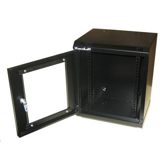 XtendLan 10" nástěnný rozvaděč 9U, šířka 350mm, hloubka 280mm, nosnost 50 kg, dveře z plexiskla, svařovaný, černý