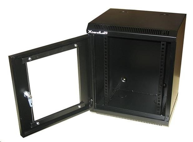 XtendLan 10" nástěnný rozvaděč 9U, šířka 350mm, hloubka 280mm, nosnost 50 kg, dveře z plexiskla, svařovaný, černý