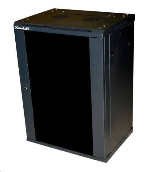 XtendLan 19" nástěnný rozvaděč 12U, šířka 600mm, hloubka 450mm, nosnost 60 kg, skleněné kouřové dveře, svařovaný, černý