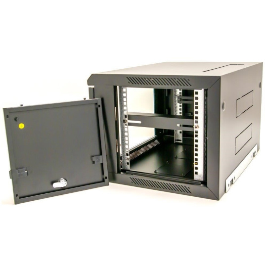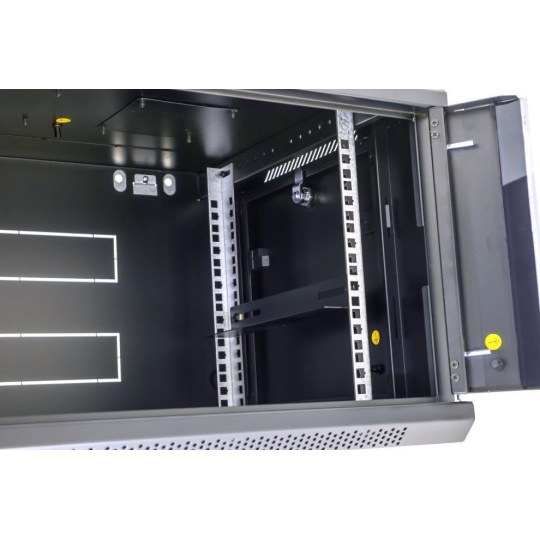 XtendLan 19" nástěnný rozvaděč 6U, šířka 600mm, hloubka 450mm, nosnost 60 kg, skleněné dveře, svařovaný, černý