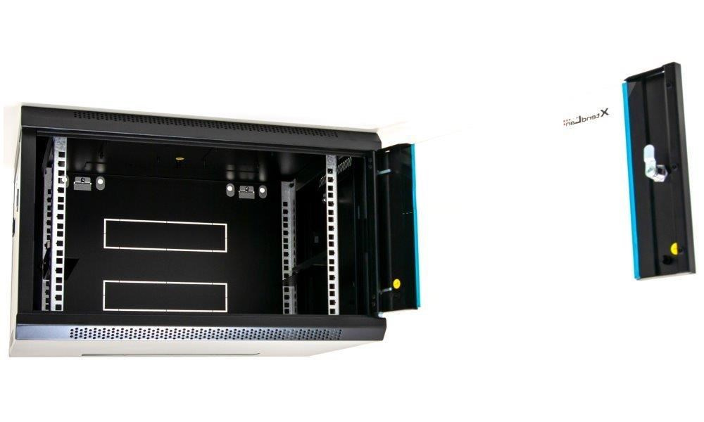 XtendLan 19" nástěnný rozvaděč 6U, šířka 600mm, hloubka 450mm, nosnost 60 kg, skleněné dveře, svařovaný, černý