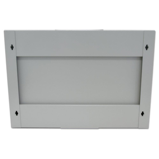 Univerzální jednodílný rozvaděč určený pro montáž na zeď (snadné připevnění - na hmoždinky). Vyroben je z válcované oceli, nosné části jsou z oceli tloušťky 1,5 mm (ostatní z 1,2 mm ocelového plechu). Konstrukce dovoluje statickou zátěž 35 kg. Přední dveře jsou skleněné, uzamykatelné. Boční panely nejsou odnímatelné. Dodává se s montážní sadou. Provedení: dveře - bezpečnostní sklo, zaměnitelný směr otevírání zádní kryt - plný boční kryt - plný horní kryt - perforovaný, s pozicemi pro dva ventilátory
